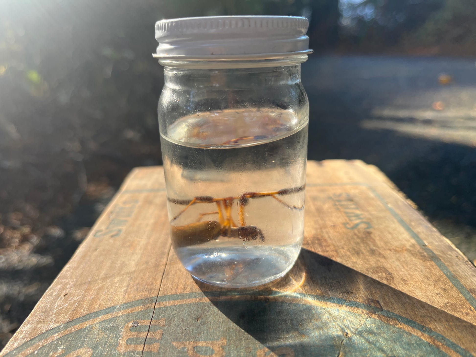 This lil guy is missing a few legs, but in a perfect pose. Specimen ships with jar but without fluid. Buyer must fill jar with 70% isopropyl alcohol upon arrival.