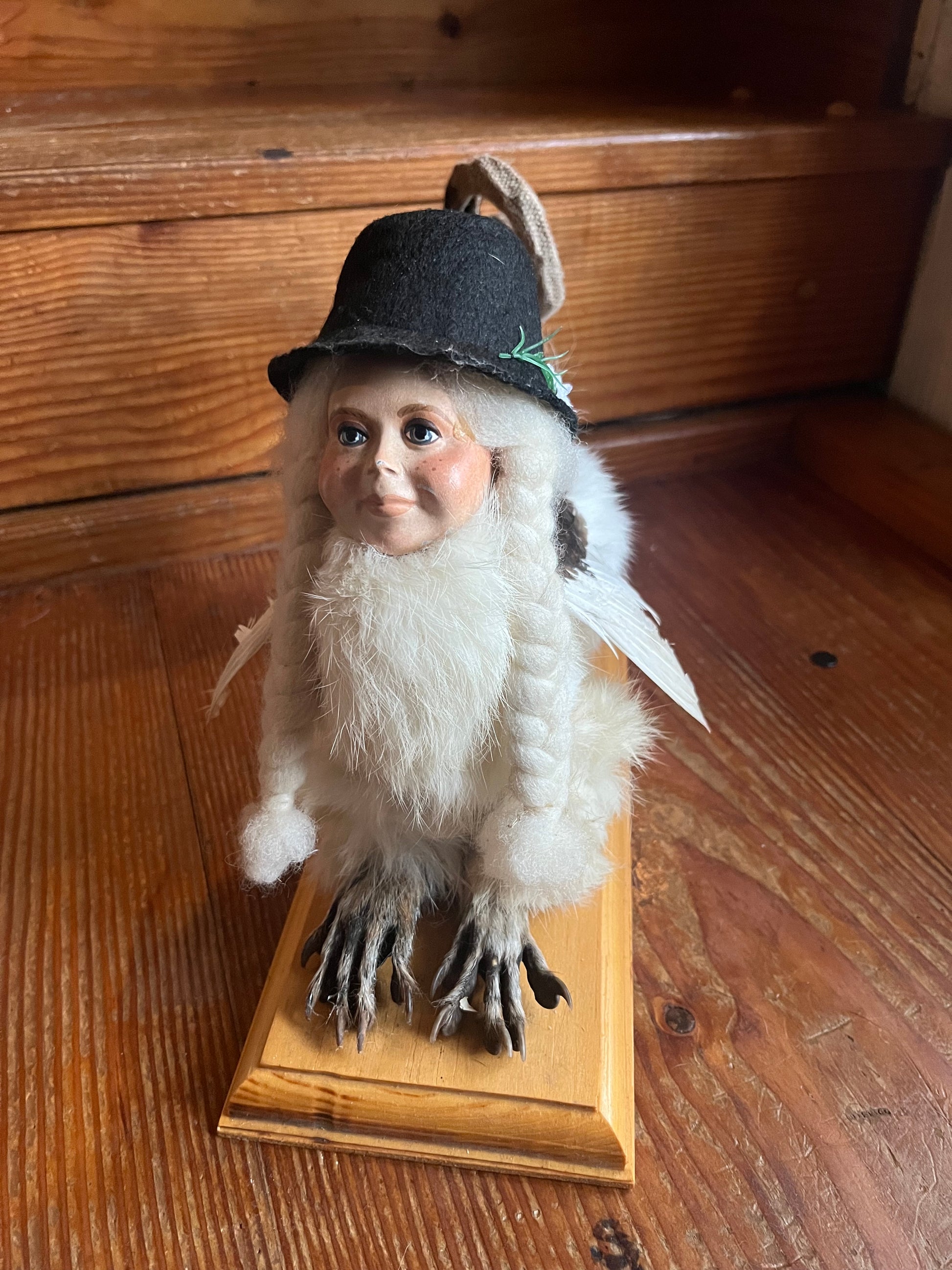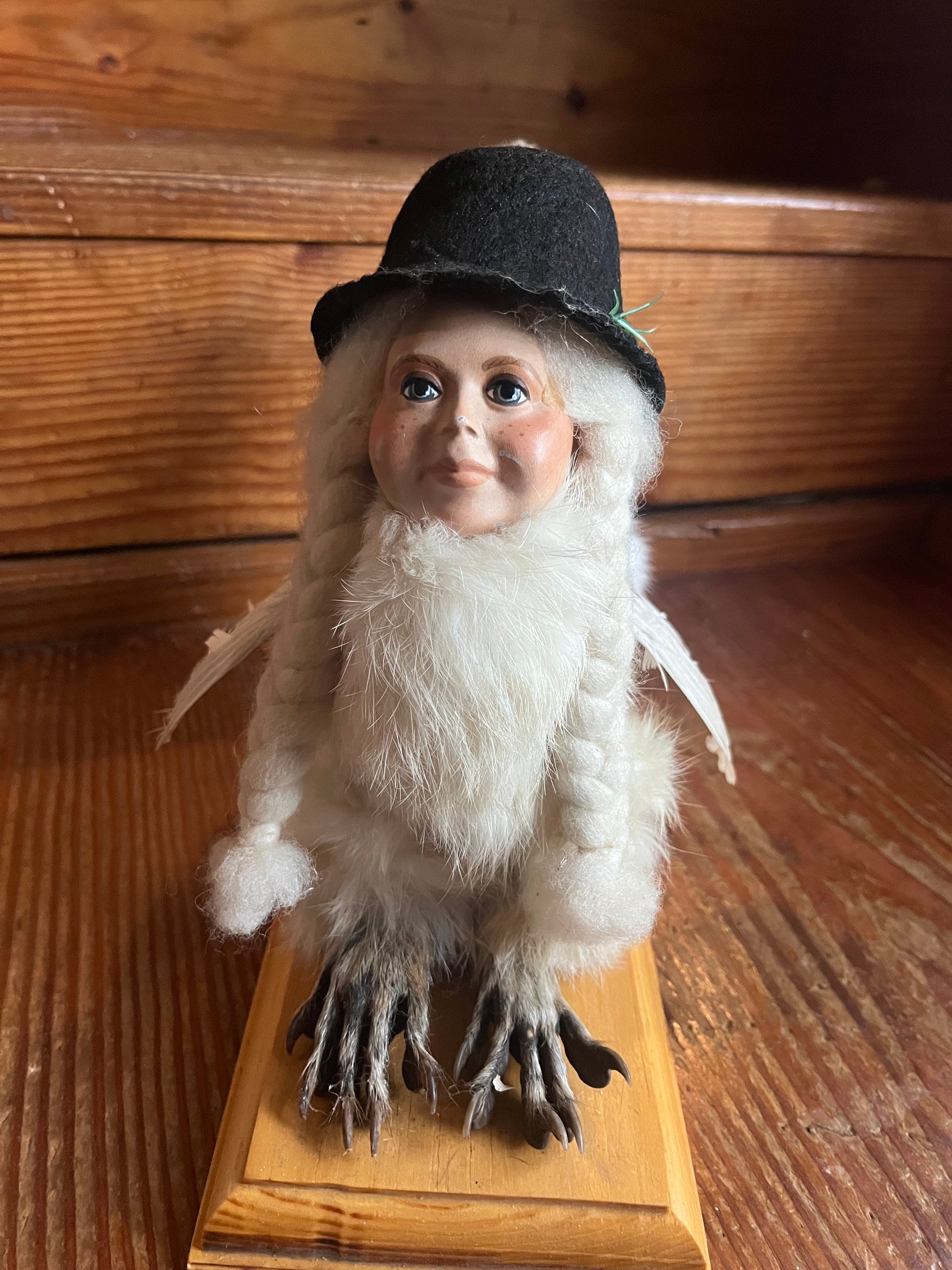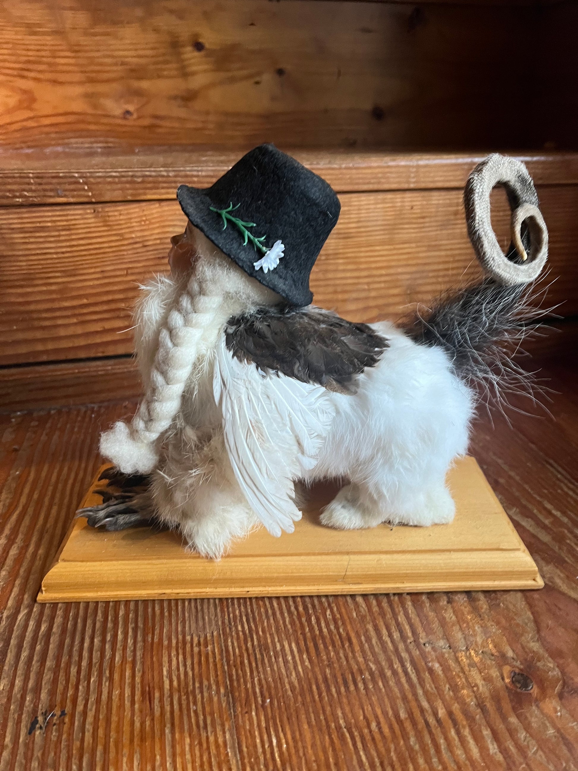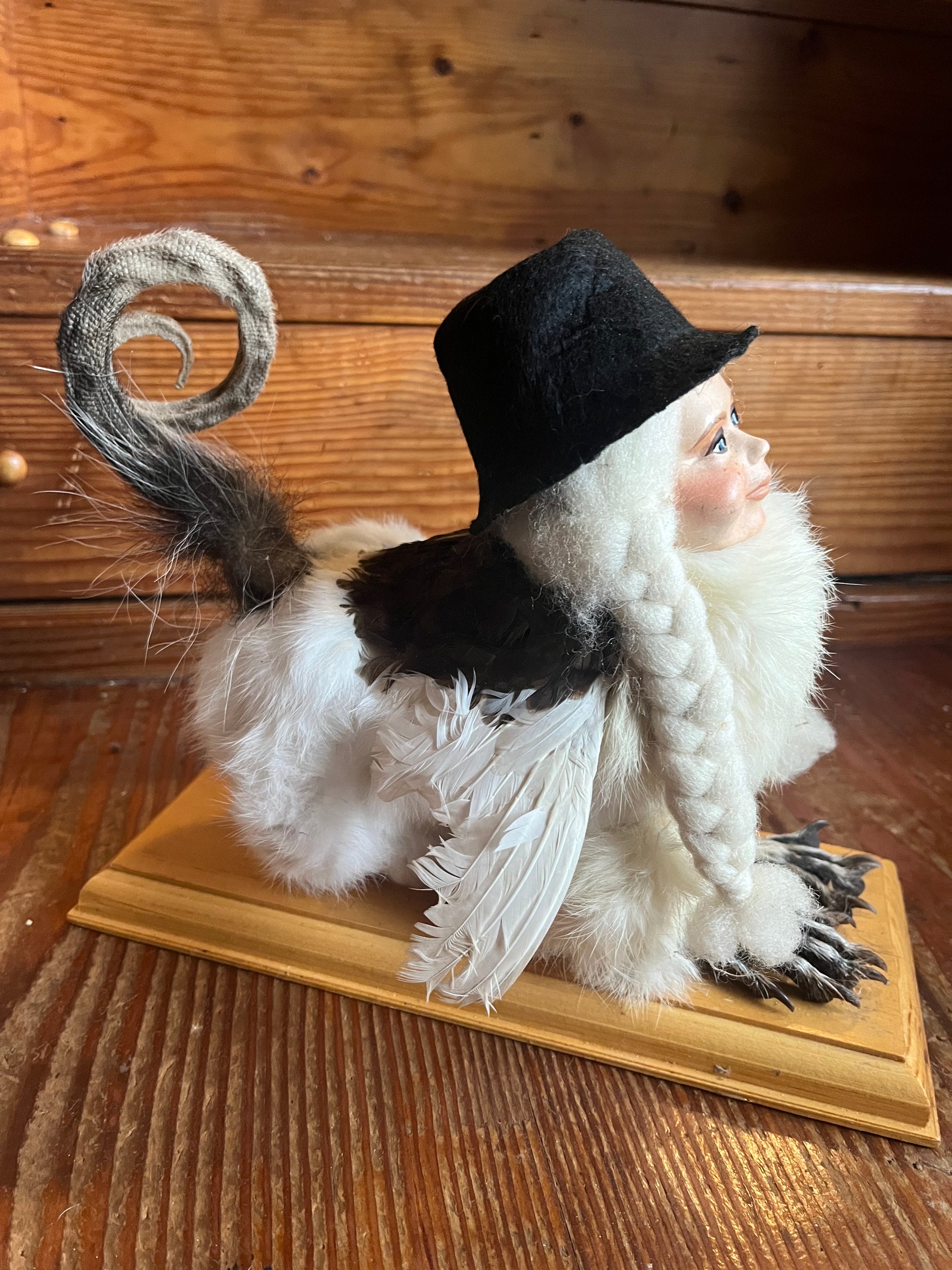 This chimera has a rabbit body, raccoon feet, quail wings and an opossum tail 9”x4”