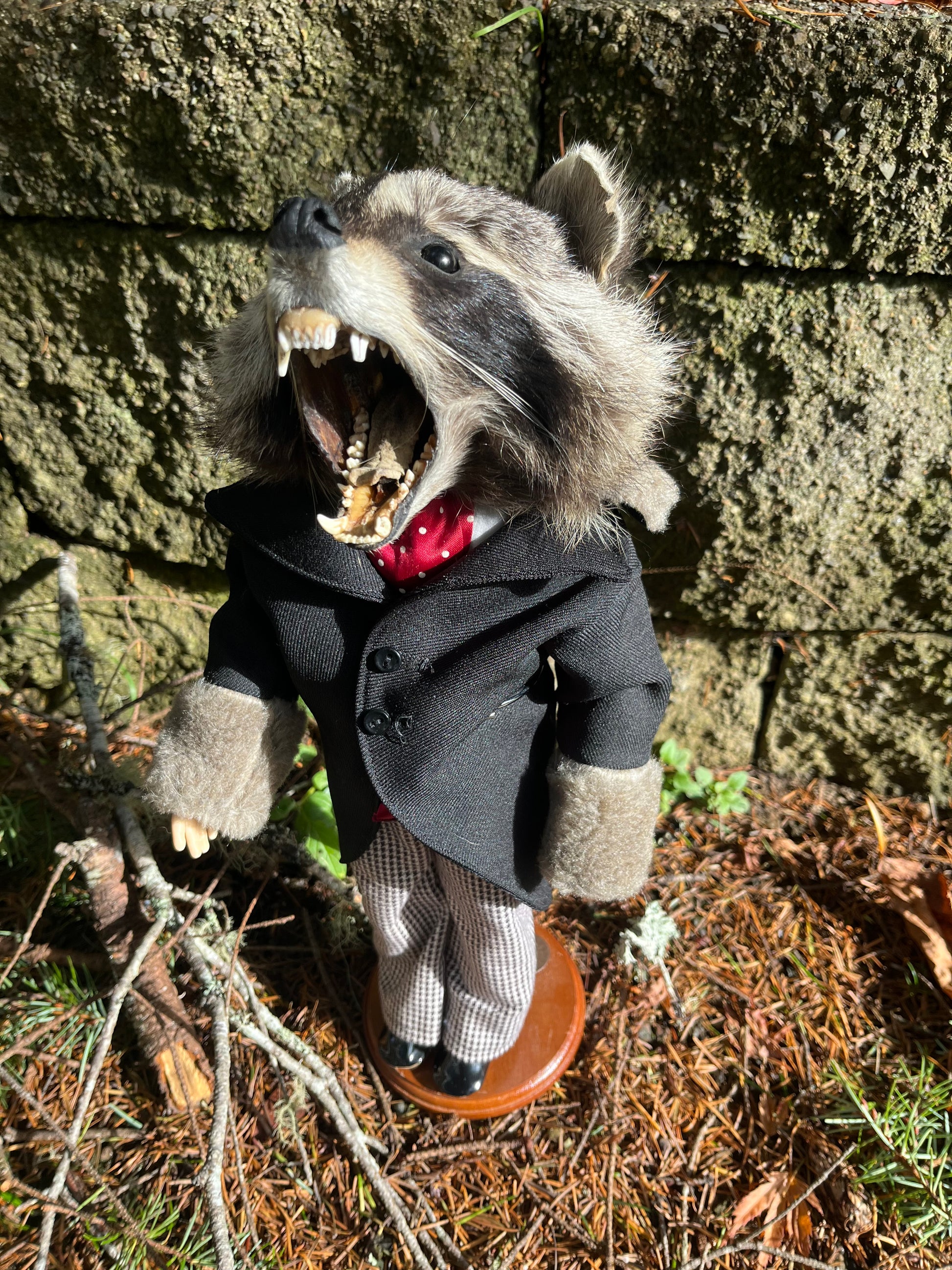 This ferocious taxidermy art doll stands approximately 16.5”